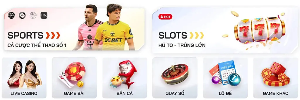 Sảnh nổ hũ mang đến trải nghiệm đầy kịch tính với hàng trăm máy slot hiện đại từ các nhà phát triển hàng đầu thế giới. Mỗi game đều sở hữu đồ họa sắc nét và âm thanh sống động. Tỷ lệ trả thưởng cao cùng với jackpot khổng lồ có thể lên đến hàng tỷ đồng, tạo cơ hội trúng lớn cho mọi người chơi